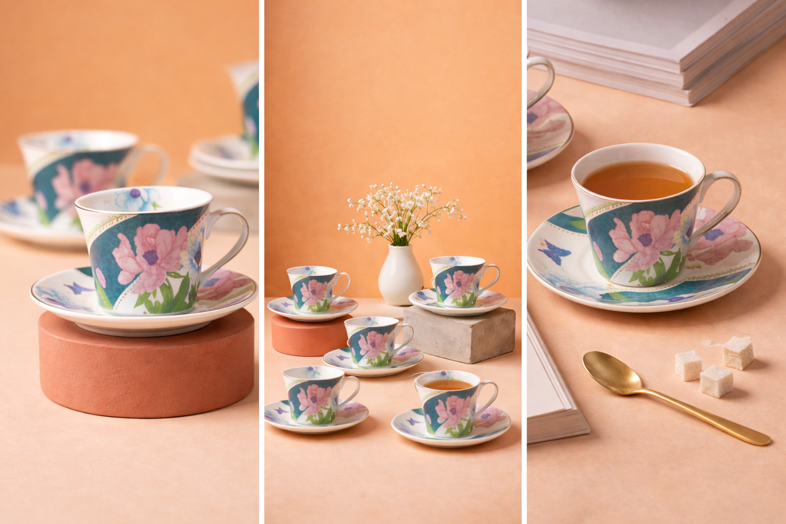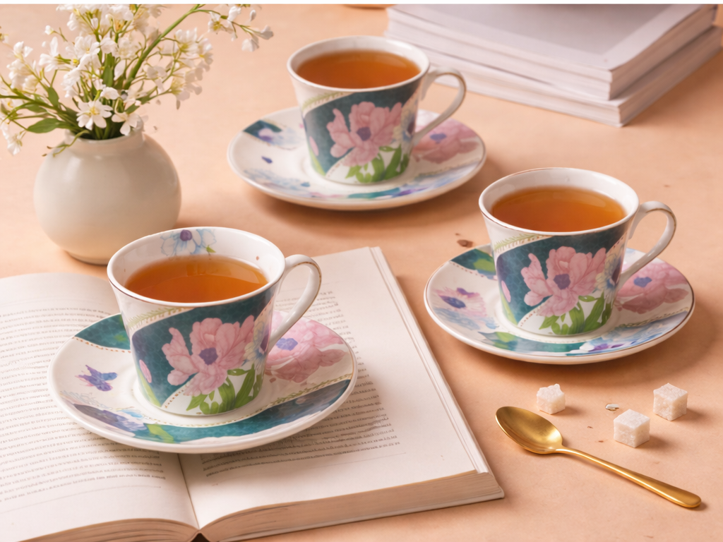 Elevate your tea and coffee experience with the exquisite Blossom Muse Tea Set, thoughtfully designed for those who appreciate beauty in everyday moments. This charming set includes 6 delicately crafted cups and matching saucers, each reflecting a perfect balance of style, sophistication, and functionality. Whether it’s a quiet morning coffee, an afternoon tea with friends, or a festive celebration, this tea set adds a touch of elegance to any table setting.