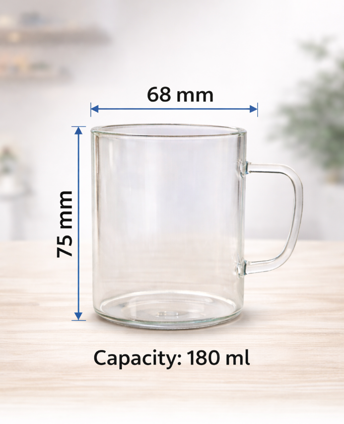 The design of the Borosilicate Tea Cup is clean and modern. It’s suitable for both home and office use. The glass feels thick and durable. I’m satisfied with the purchase.
