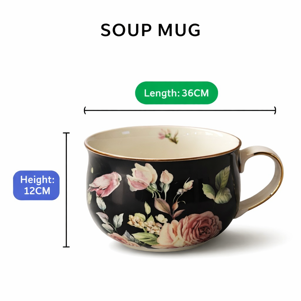 The Floral Soup Mug Set is crafted from high quality ceramic that offers a perfect balance of elegance and durability. The ceramic body feels strong yet refined and is suitable for daily tea, soup, or coffee use.